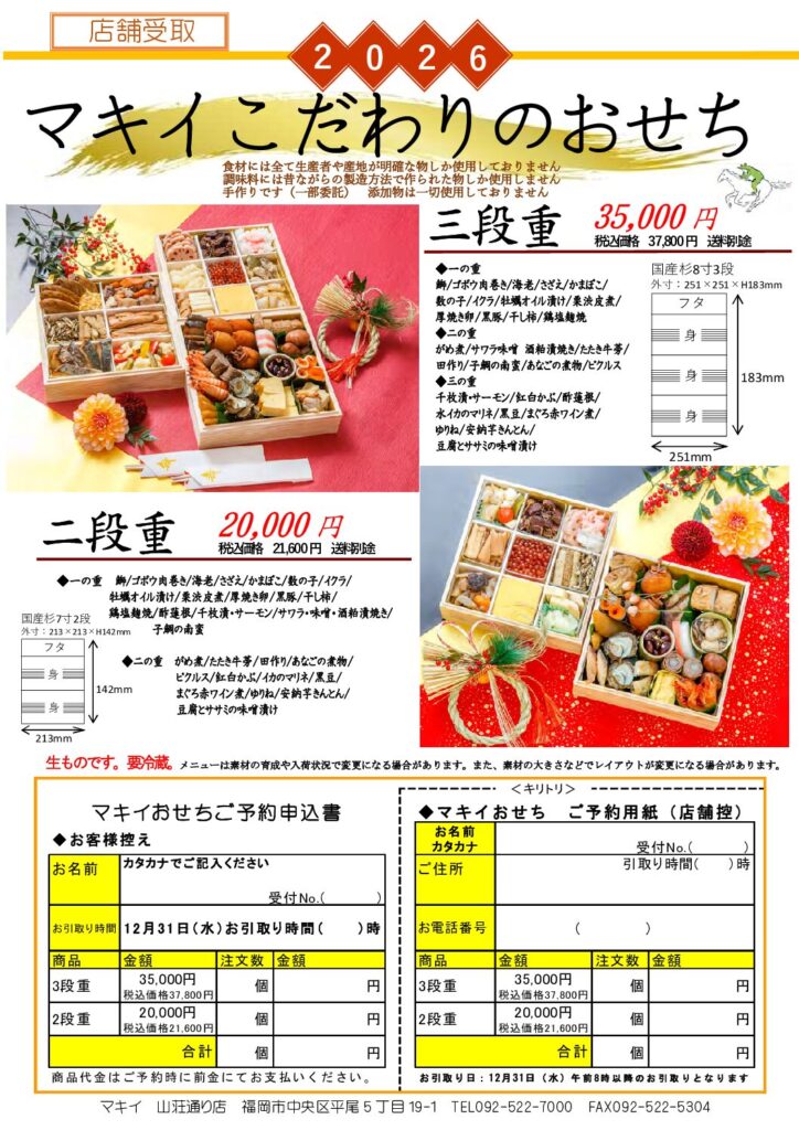 ご予約は、マキイ山荘通り店 店頭のみにて受付中です。(前金制)※受付票はマキイ山荘通り店・店頭にあります