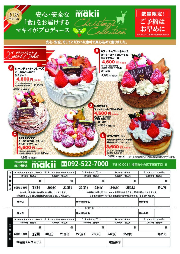 ご予約は、マキイ山荘通り店 店頭のみにて受付中です。(前金制)※受付票はマキイ山荘通り店・レジにあります